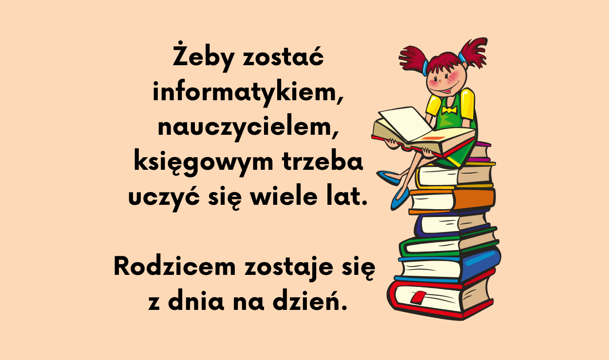 Żeby zostać informatykiem, nauczycielem, księgowym trzeba uczyć się wiele lat a rodzicem zostaje się z dnia na dzień. Zwykle przygotowujemy się do każdej roli, czy do każdego zadania. Raz zajmuje to więcej czasu a raz mniej. W zależności od tego jak skomplikowane jest to zadanie lub czego wymaga od nas pełnienie danej roli. Na bycie...Read More